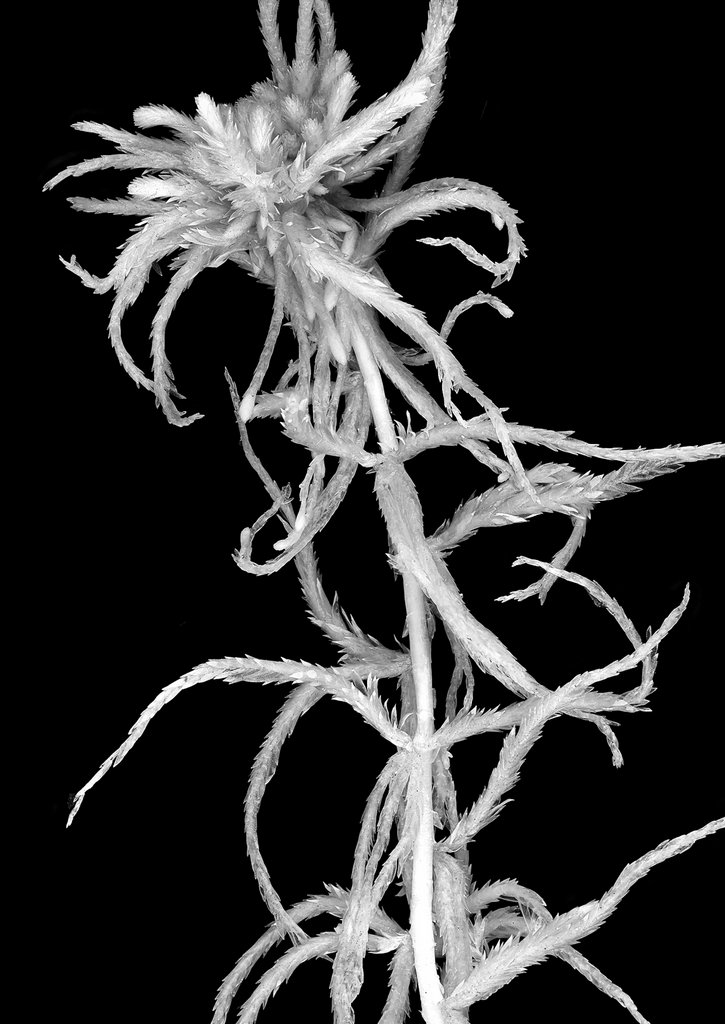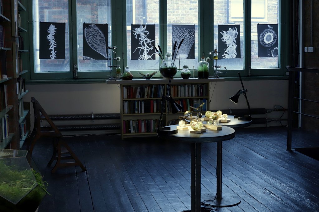 The exhibition also features Accumulations, cast resin spherical sculptures containing suspended specimens of sphagnum moss, lichens and plants that thrive in peatland environments; Cultivations, living peatbog mosses and plants the artist has grown, presented in salvaged laboratory glass vases and terrariums; Observations, photomicrographs, archival prints, photographs and microscope video footage of sphagnum species.